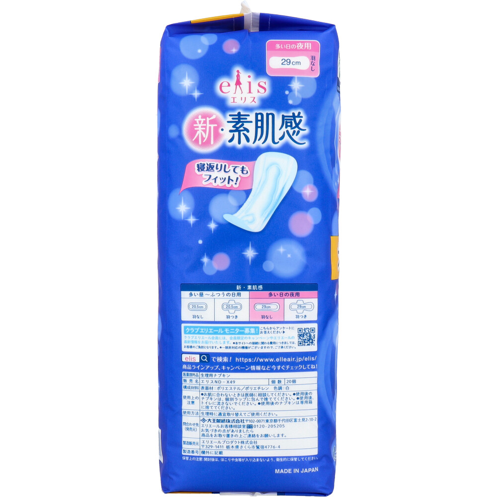 エリス 新・素肌感 多い日の夜用 羽なし 29cm 20枚入=。