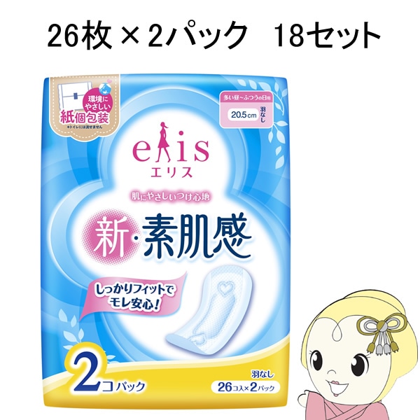 箱売 エリス新・素肌感26枚×2パック羽なし多い昼~ふつう日の用18セット 医薬部外品T4902011103052 送料無料 北海道・沖縄・離島除く日用品,生理用ナプキンぎおん WEB本店。
