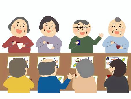 施設で楽しく食事をする高齢者たちイラスト - No: 23762158無料イラスト・フリー素材なら「イラストAC」。