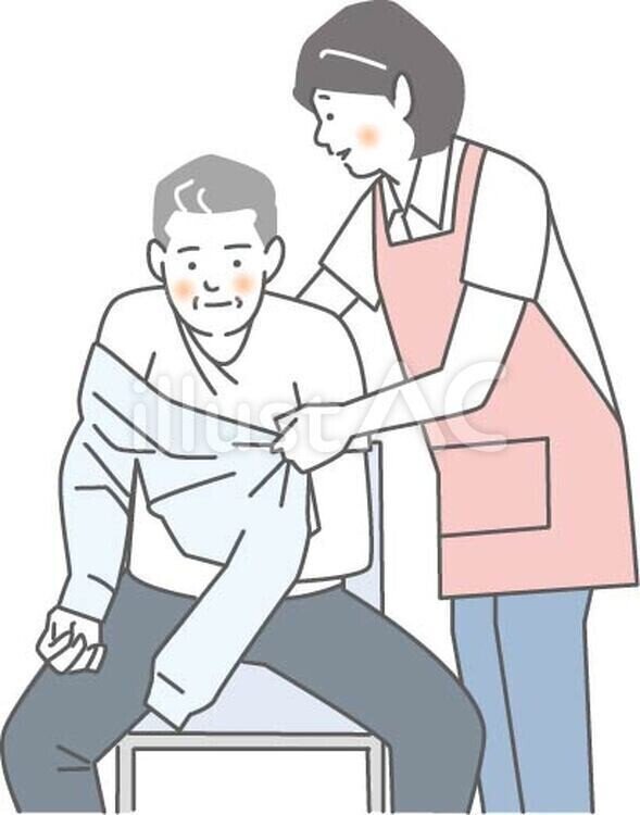 イラスト無料素材:高齢者施設_着替介助 〜奮闘記 on イラストAC: イラストレーター Kana129。