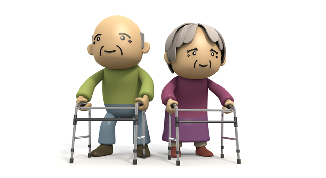介護施設3D文字高齢者 - フリーイラスト素材 - 医療介護病院人物。