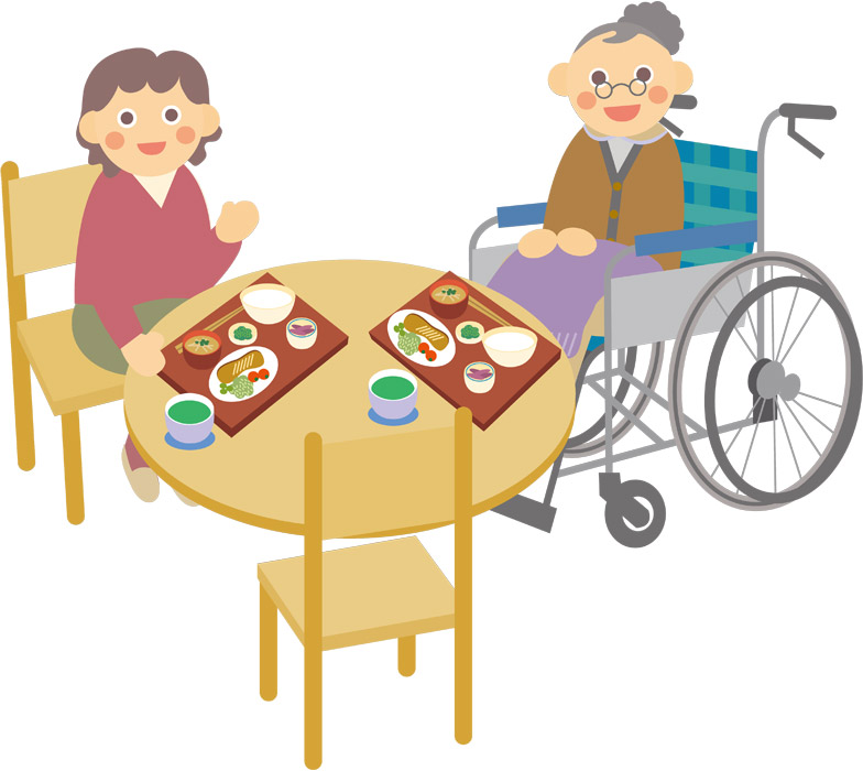 介護・高齢者施設での食事風景のフリー素材を厳選しましたフリー素材図鑑。