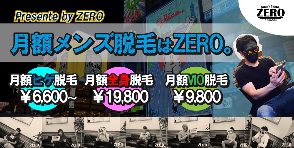 月額メンズ脱毛 全身 ヒゲ 陰部 VIO 男性脱毛 ZERO。