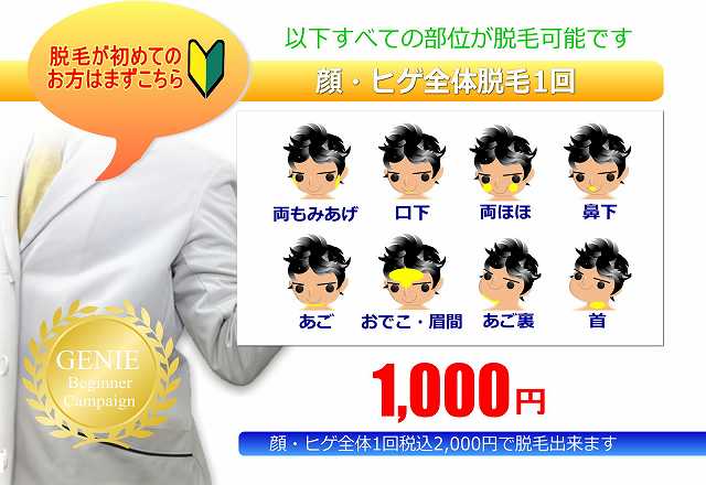 初回限定脱毛キャンペーンメンズ脱毛・ヒゲ脱毛が広島で最も安い脱毛店GENIE。