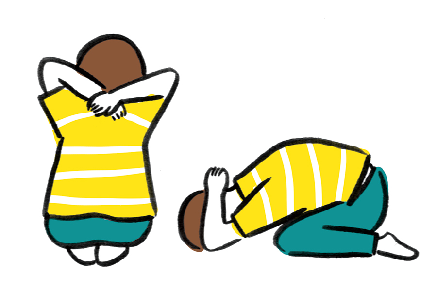 防災無料イラスト on X: "地震のときランドセルで頭部を守る子どものイラスト https:t.co lgHOXTcCSm新学期が始まりました。登下校中に大きな地震が来たらと考えると親御さんは心配ですね。ブロック塀や自動販売機など倒れそうなものから離れること、ランドセルなどで。