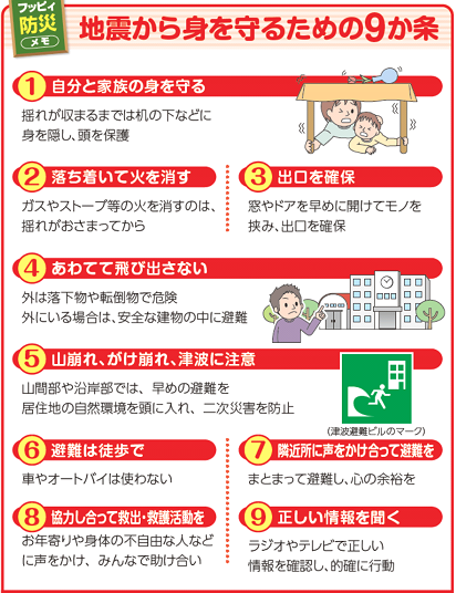 長野県防災 on X: " 地震 が起きたらどう行動しますか?「机の下に隠れる」と教わった方が多いと思いますが、そうそう近くに机はありません。地震 はいつどこで遭遇するか分からないもの。どんな時でも使えるのは「まず低く,頭を守り,動かない」の3つの行動!ダックの。