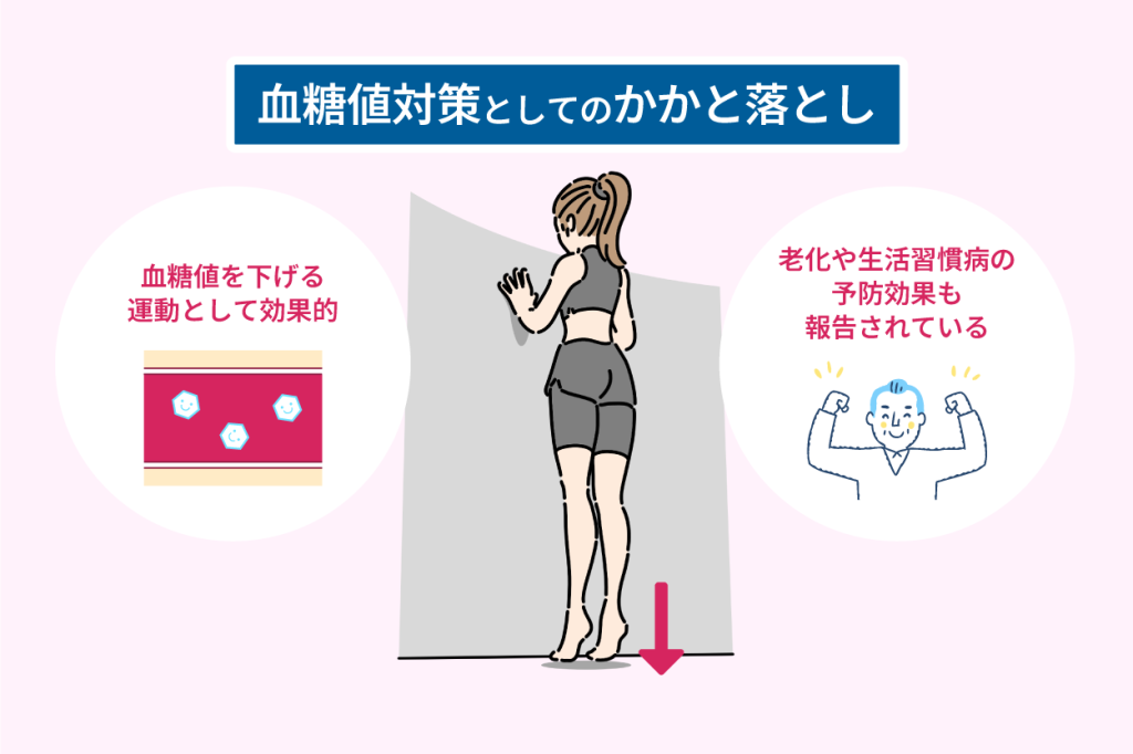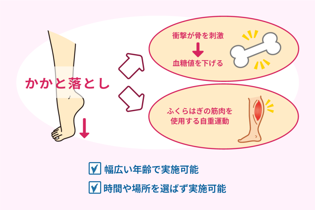 血糖値対策としてのかかと落としで老化や生活習慣病の予防も。