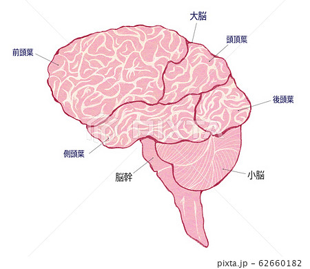 部位別に名称を記載した人の脳全体図イラスト のイラスト素材62660182- PIXTA。