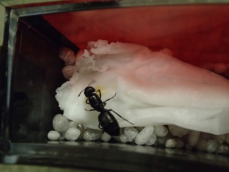 アリ飼育体力回復のため産んだ卵を食べるAnt colony。