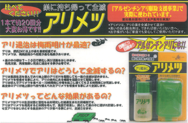 殺蟻剤のロングセラー。アルゼンチン蟻に効果あり アリメツ 商品詳細野菜苗・種や多肉植物の通販サイトイケダグリーンセンタ。
