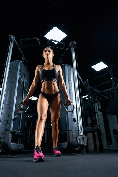 ベンチに座って機械でウェイトを持ち上げる若い白人の真面目な女性ボディービルダー。背中が回った。あなたがどこから来たのかを決して忘れないでください。の写真– Unsplashのジムの画像。