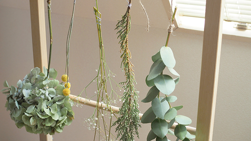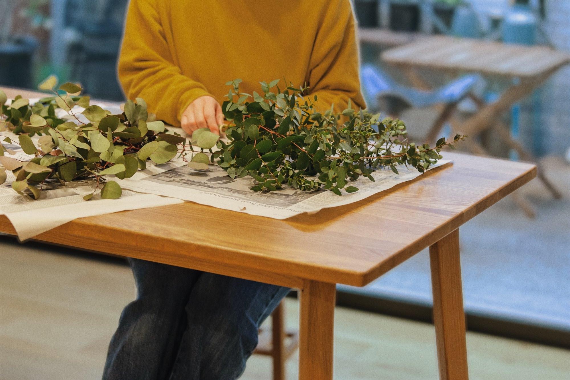 ドライフラワーを手作りしておうち時間を楽しもう!ユーカリ枝で簡単手作り。オフィス家具とホーム家具は株式会社弘益。