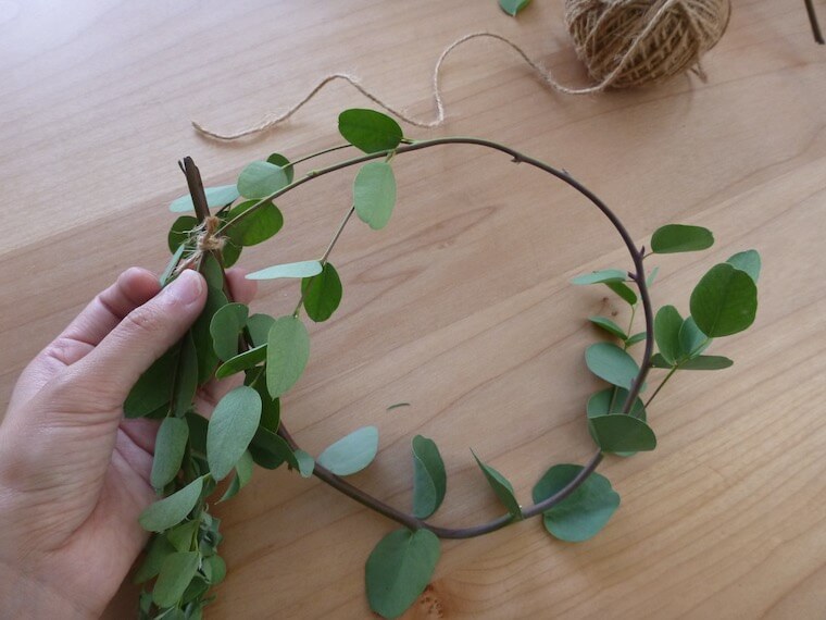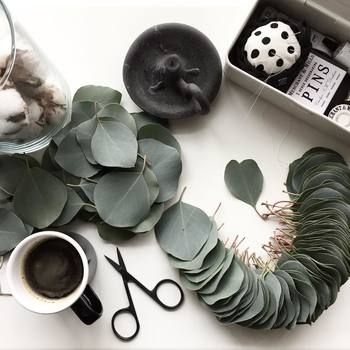 簡単リース作りでおしゃれインテリアユーカリを使ってグリーンのリースを作る。