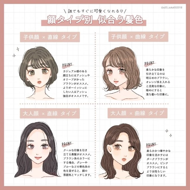 ホットペッパービューティー on X: "\せっかく染めるなら似合う色がいいの🥺パーソナルカラー別おすすめ髪色カタログ服やメイクを決める上で重要な要素になったパーソナルカラー。今日はパーソナルカラー別にこの春おすすめの髪色をまとめたよ! タイプに合った髪色。