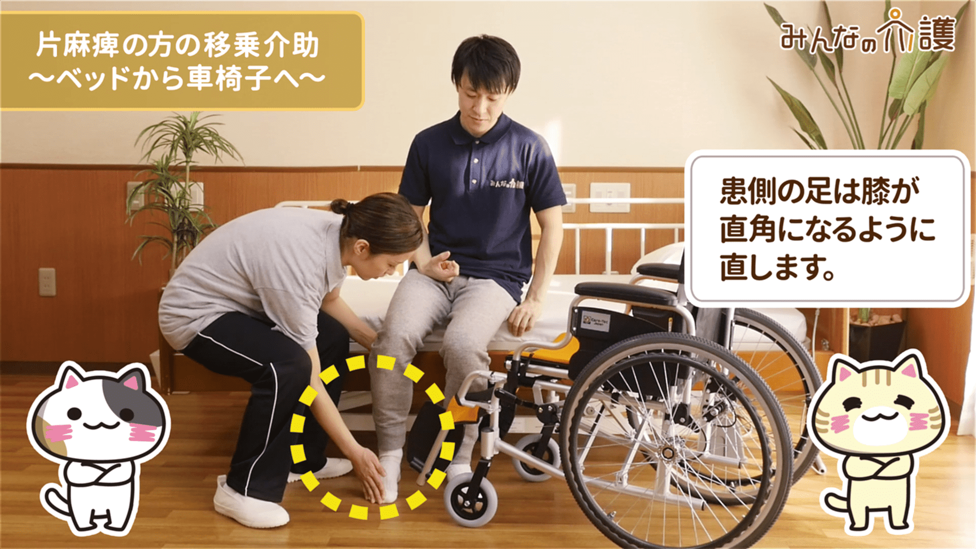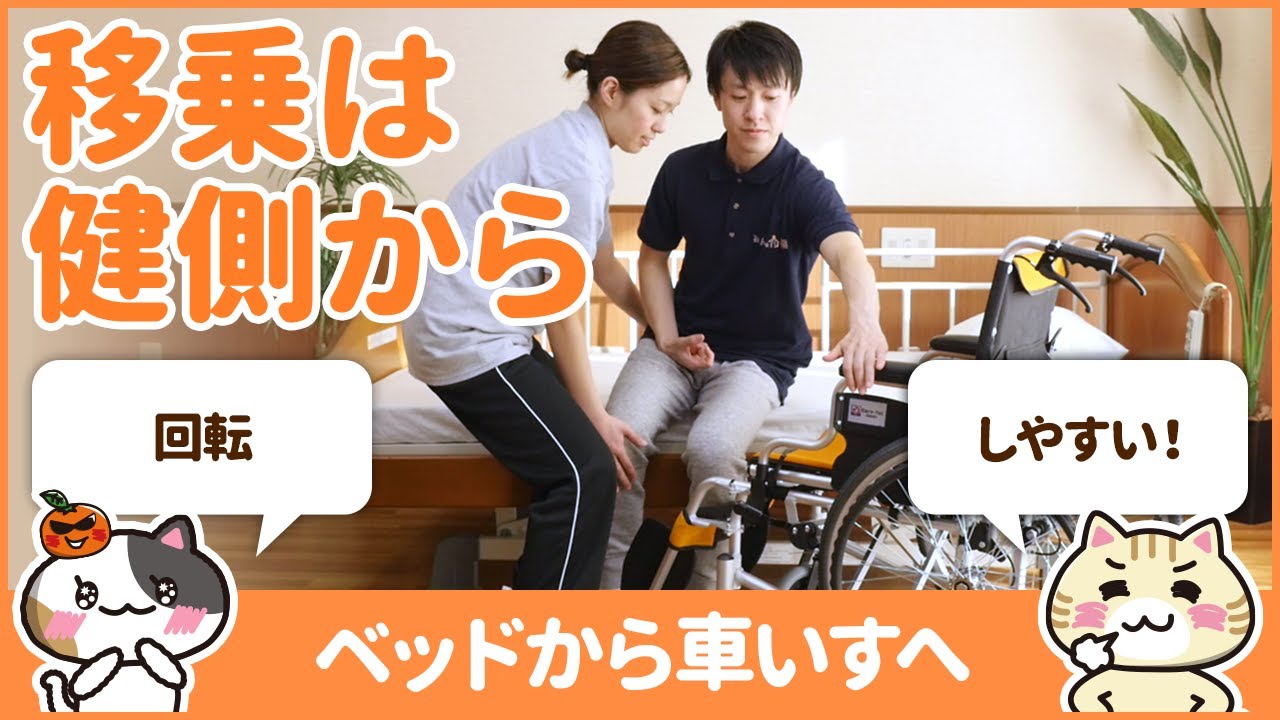 動画 車椅子からベッドへの移乗を片麻痺の方が一人で行う方法みんジョブ。