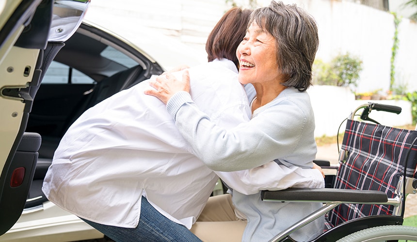 片麻痺患者さんの車の乗り降り医療法人社団朋和会 西広島リハビリテーション病院。
