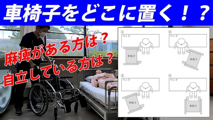322基礎「片麻痺患者さんの車椅子移乗 実際にやって説明します+国試2問解説」看護学生講座 - YouTube。