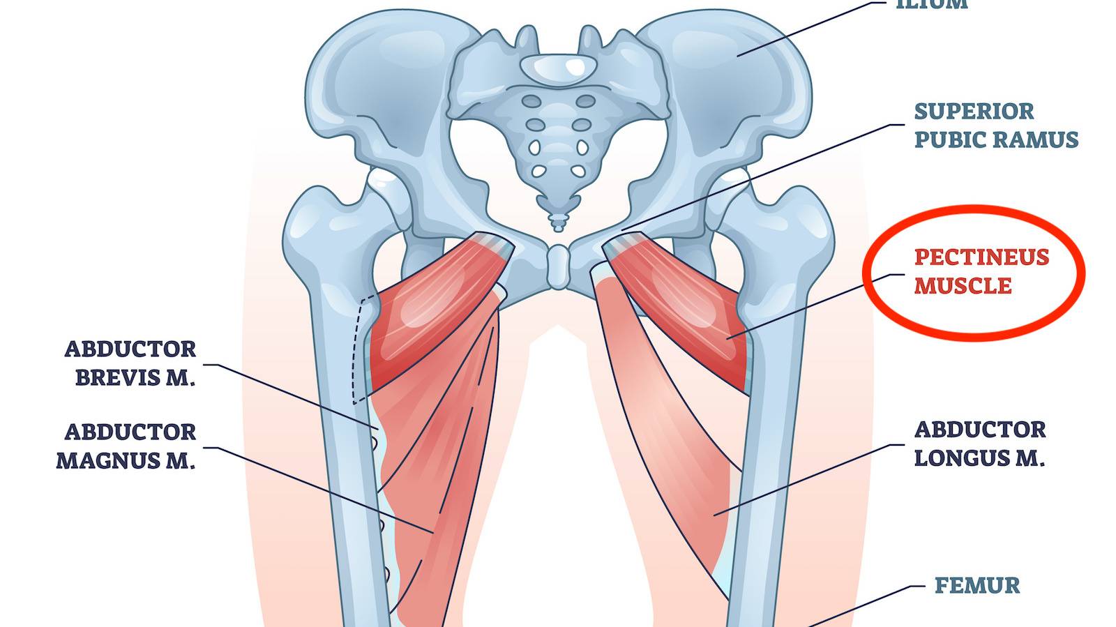 恥骨筋の起始停止・拮抗筋・関連ヨガポーズ・トレーニング・ストレッチ機能解剖学事典。