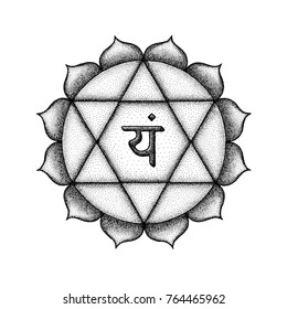 ベクター画像第4心アナハタ・チャクラ・サンスクリット種子・マントラ・ヤム・ヒンドゥー教の調子の蓮花。ヨガの瞑想のために黒い白黒のシンボル白い背景にドットワークのタトゥースタイルの手描きの」のベクター画像素材 ロイヤリティフリー764465962Shutterstock。