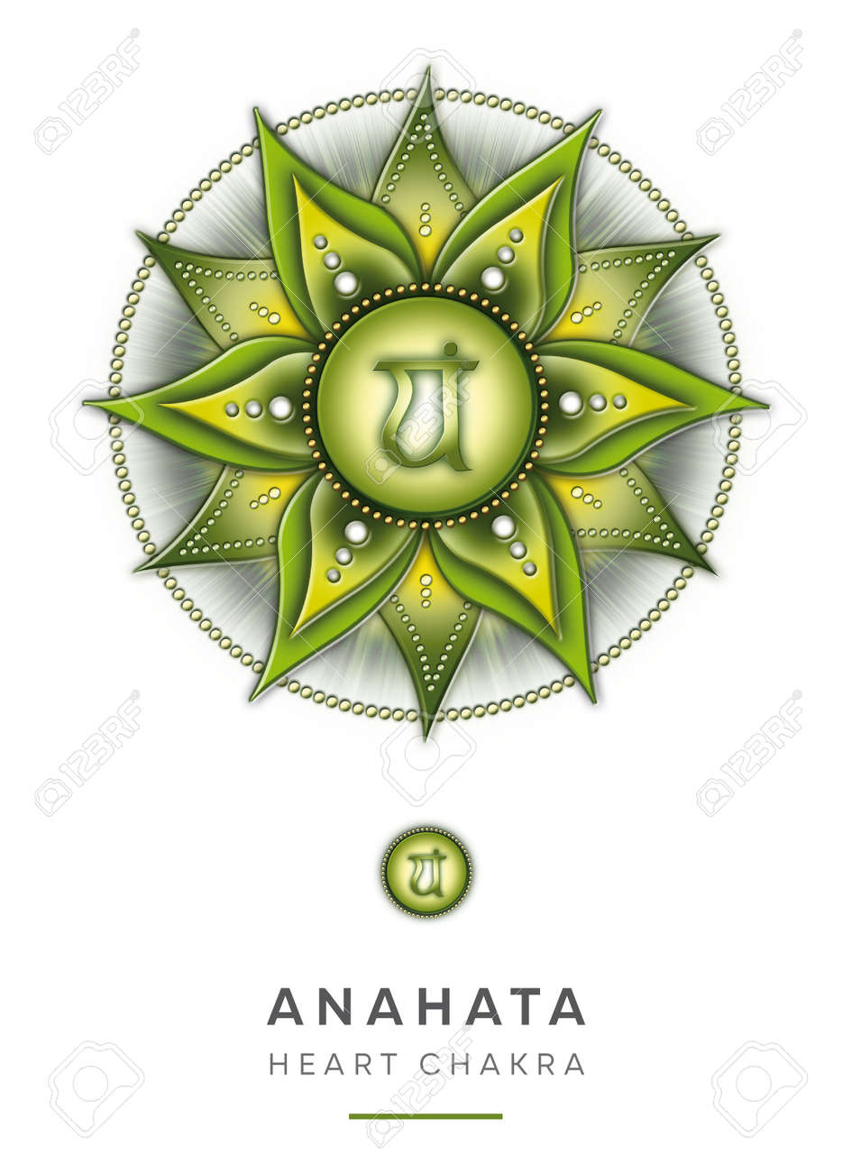 第4のアナハタチャクラヒンドゥーサンスクリット語のハートチャクラグリーンは瞑想ヨガの平らなシンボルですベクトル -アイコンのベクターアート素材や画像を多数ご用意 - iStock。