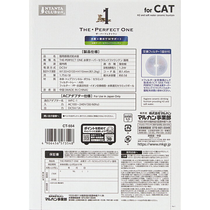 マルカン CT‐554 THE・PERFECTONE水素サーバーセラミックファウンテン猫用 マルカン THE・PERFECT ONE猫用水素サーバーファウンテンフィルターの通販給水器犬猫用品ホームセンターナフコ 公式通販。