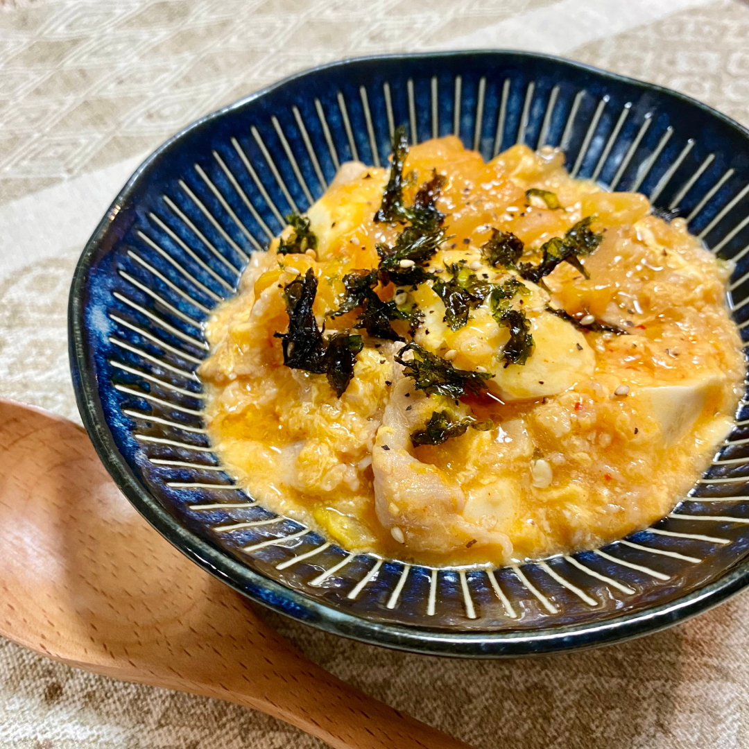 あったかキムチチゲ雑炊 - オートミールでヘルシーに。