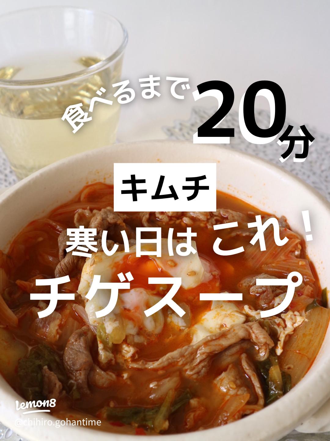 寒い日に食べたいキムチチゲ🔥, お肉もお野菜もたっぷりだからおかずになるスープです🥣, スープだけどボリュームたっぷりだから,満足感もあってあったまるのがいいところ😌, ✍️詳しいレシピ, ◆キムチチゲ,材料 , ・豚肉150g, ・キムチ100g,・たまねぎ1 2個, ・しめじ1 3, ・豆腐300g,調味料 , ・ごま油大さじ1, ・味噌大さじ2,。