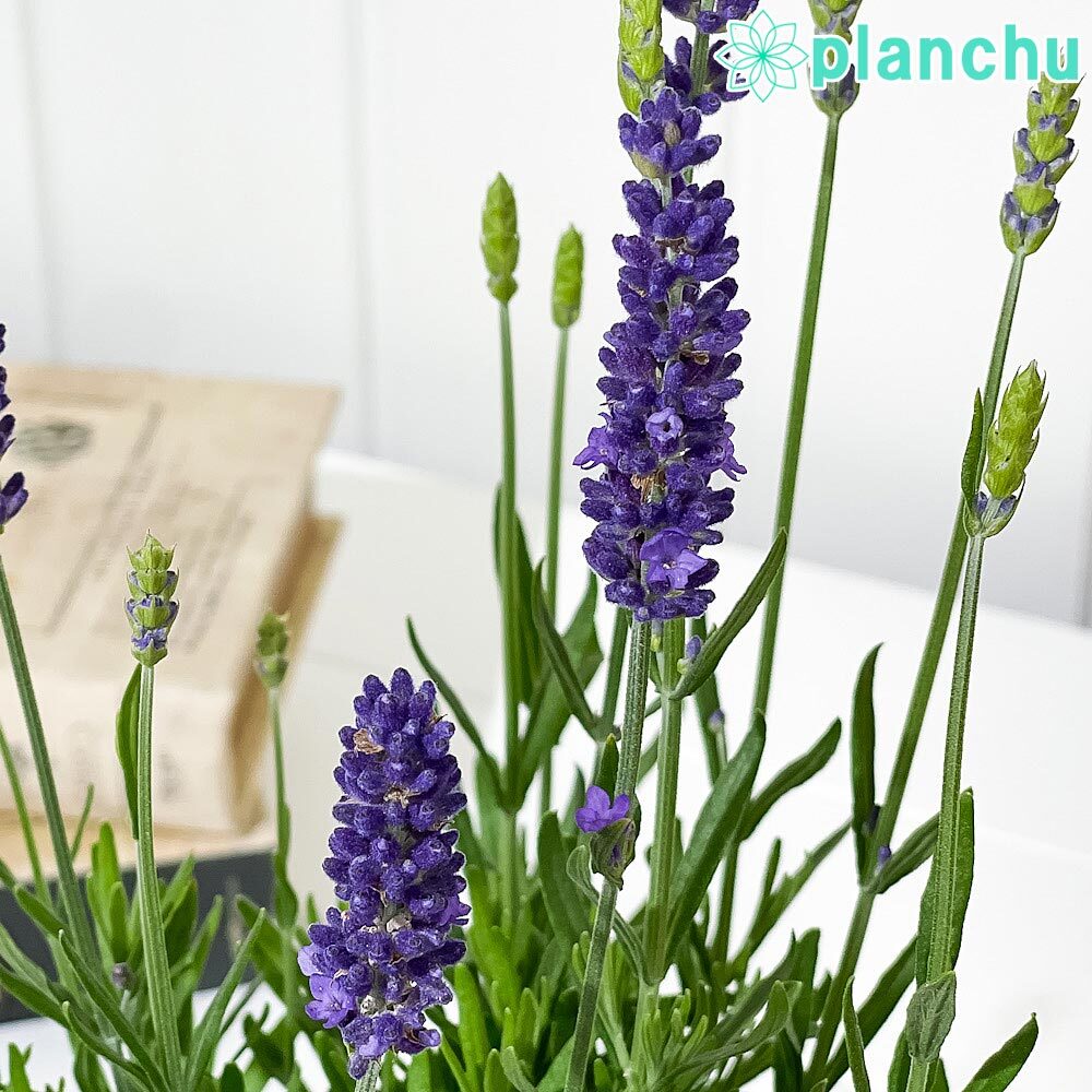 PLANCHU ハーブ苗 イングリッシュラベンダー 4号鉢 受け皿付き 育て方説明書付き Lavandula angustifolia cv. -観葉植物専門店 プランチュ - プレゼント&ギフトのギフトモール。
