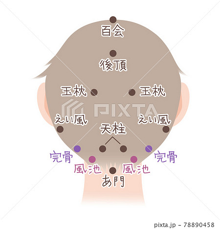 わかりやすい頭のツボの図解イラスト素材・後ろ向き・女性向けのイラスト素材78890458- PIXTA。