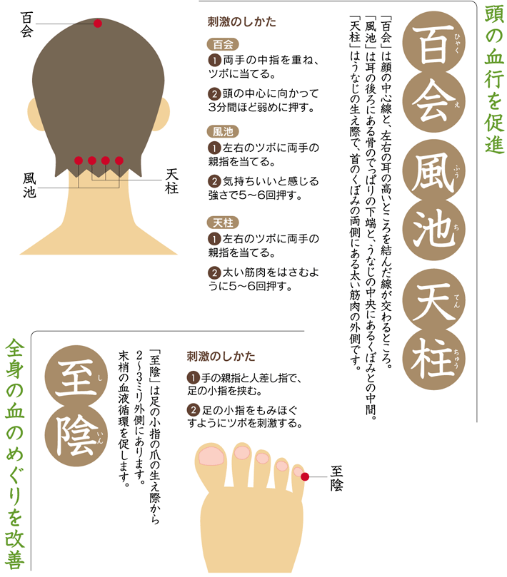 頭部のツボ押しで温活効果!脳の血流量アップで頭もスッキリ今日のおふろどうする。
