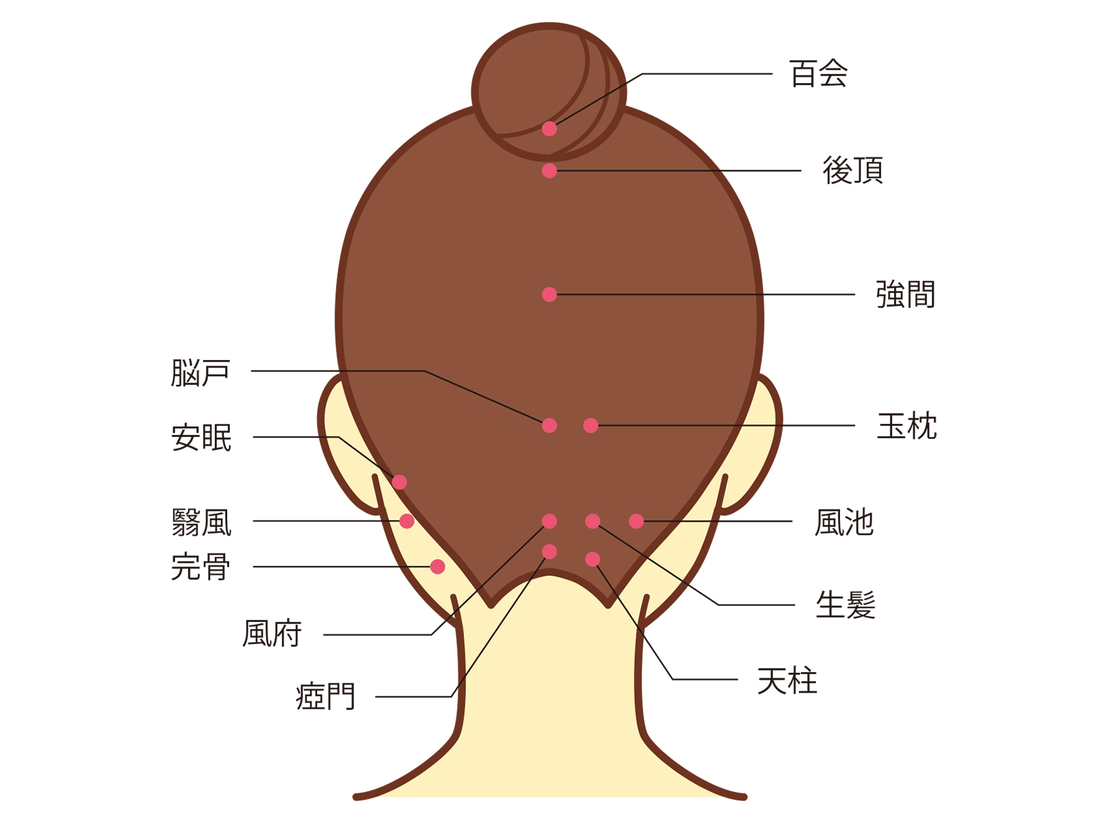 天柱 頭にあるツボの中でも最重要。全身の症状に効く。 - 尼崎市阪急塚口徒歩2分『ルルド鍼灸』土日祝も開院。