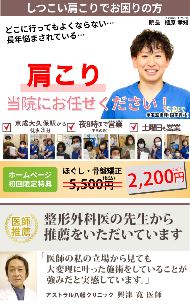 千葉の肩こり整体なら国家資格を持つプロ集団の伊集院整骨院。