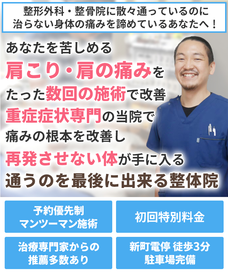 西宮市の肩こりに特化した専門整体西宮にこ整骨院・整体院。