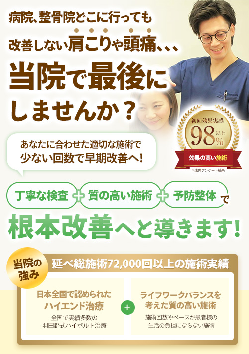 肩こり改善整体:神戸市垂水区の整体・整骨院ならはた整骨院 神戸垂水区の整骨院「治療家の先生も推薦する整体」はた整骨院。