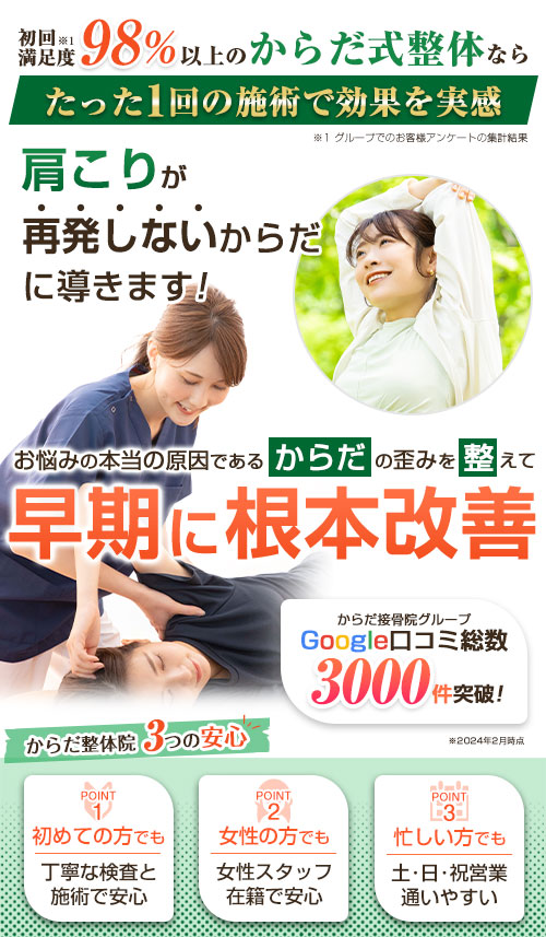 肩こり・首こりでお困りの方へ幹整体院・みき接骨院 名古屋鳴子本院。