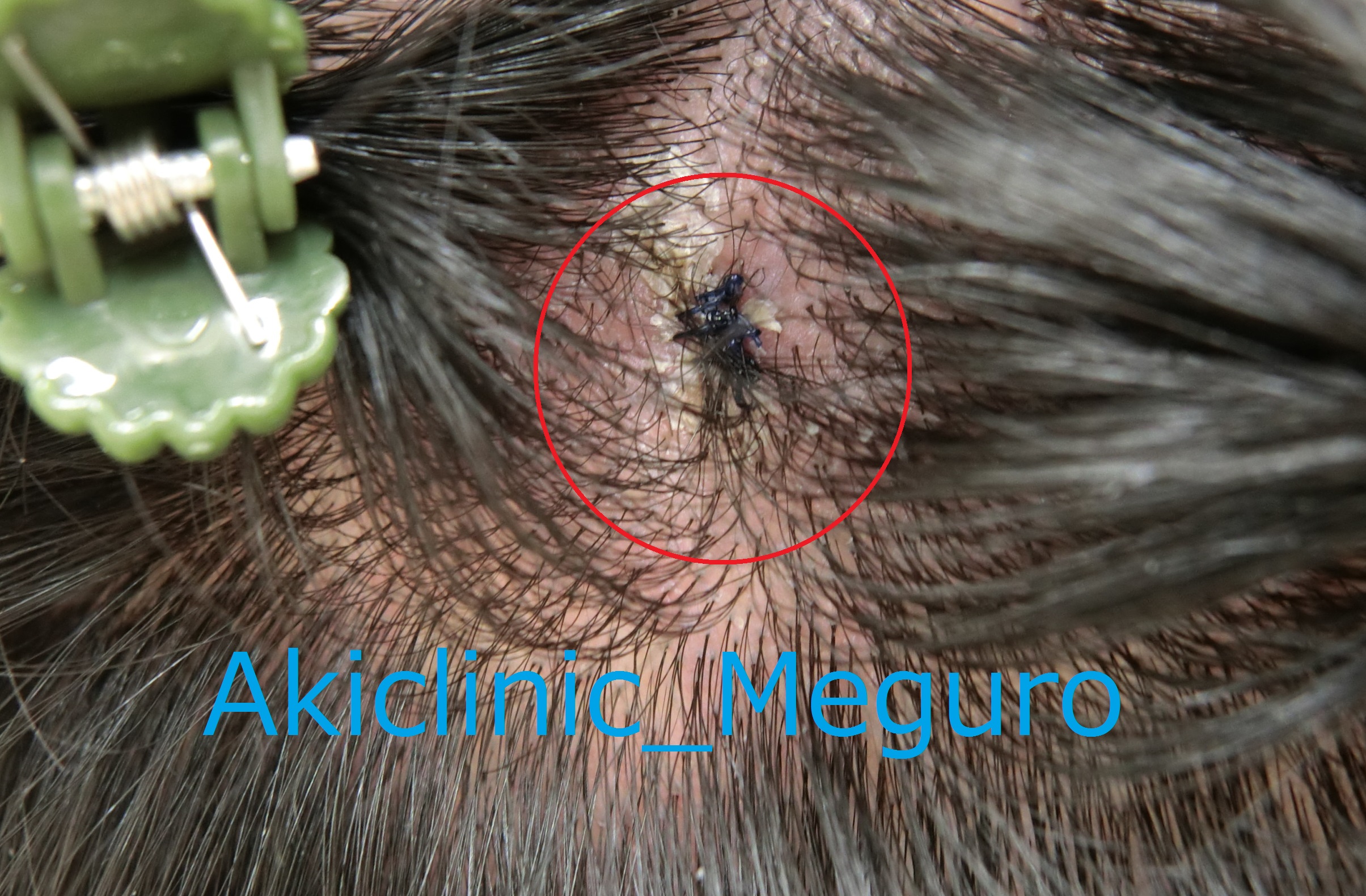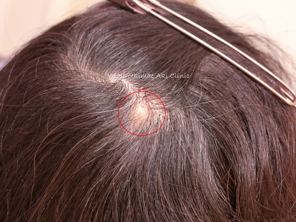 頭のできもの、当院で髪の毛を剃らずに治療できます目黒駅前アキクリニック。
