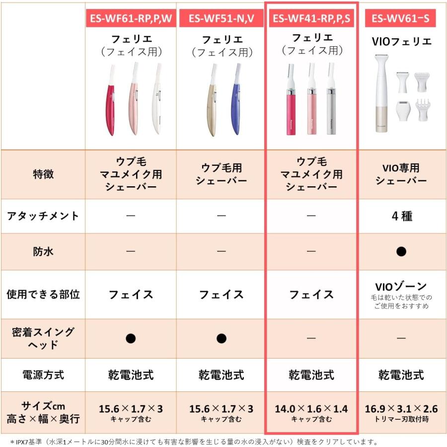 パナソニック Panasonic フェリエ フェイスシェーバー 女性 レディース ES-WF63 顔そり 顔剃り 女性用シェーバー 電動 眉毛 うぶ毛ムダ毛 処理 パナソニック フェイスシェーバー フェリエ ES-WF41をレビュー!クチコミ・評判をもとに徹底検証マイベスト。