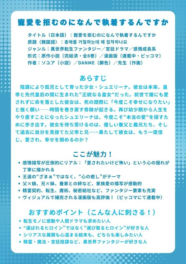 寵愛を拒むのになんで執着するんですか原作の韓国語漫画や小説を無料先読み!日本語翻訳でSMARTOONを読む! - ハンタメ。