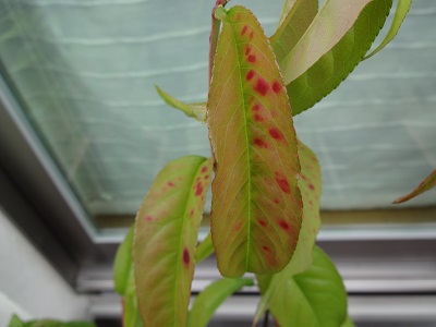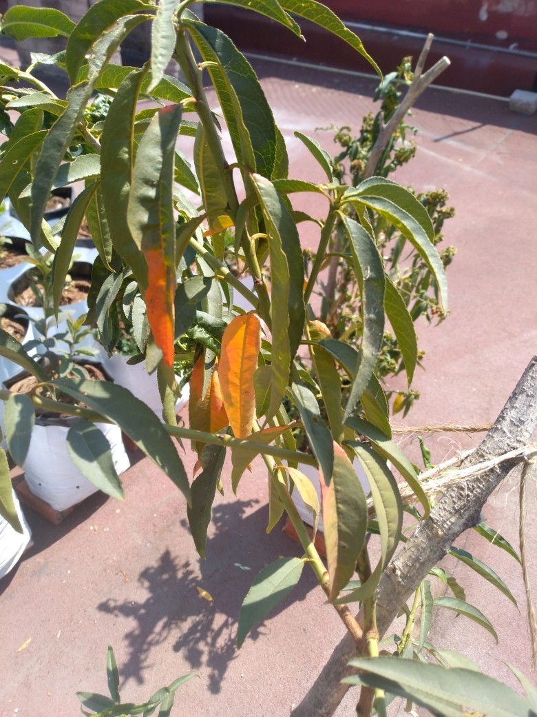 桃の木の葉っぱが赤くなってきた。縁から始まって内側へ進むんだよね。病気には見えないんだけど。もしかして日差しが強すぎるとか、栄養不足かな?何かアドバイスある?: r gardening。