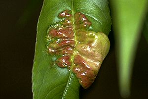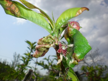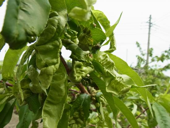花ひろばオンラインの植物管理のウンチク — アーモンドや桃の葉っぱが縮れる原因。