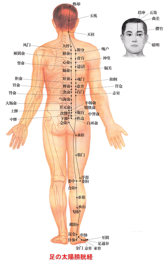 妊婦さんOK♪推拿 すいな 整体療法大阪・大阪市天王寺区 鶴橋駅近くファン鍼灸院 女性鍼灸師推拿 すいな 整体で簡単ツボ療法 経絡-足太陽 膀胱経。