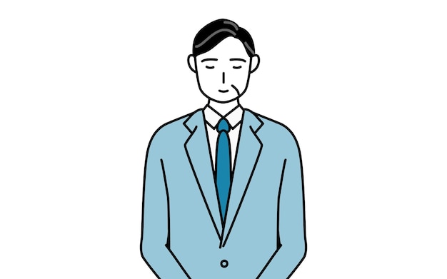 体の前で手を組むシニアビジネスマン 幹部 マネージャー 社長のシンプルな線画イラストPremiumベクトル素材。