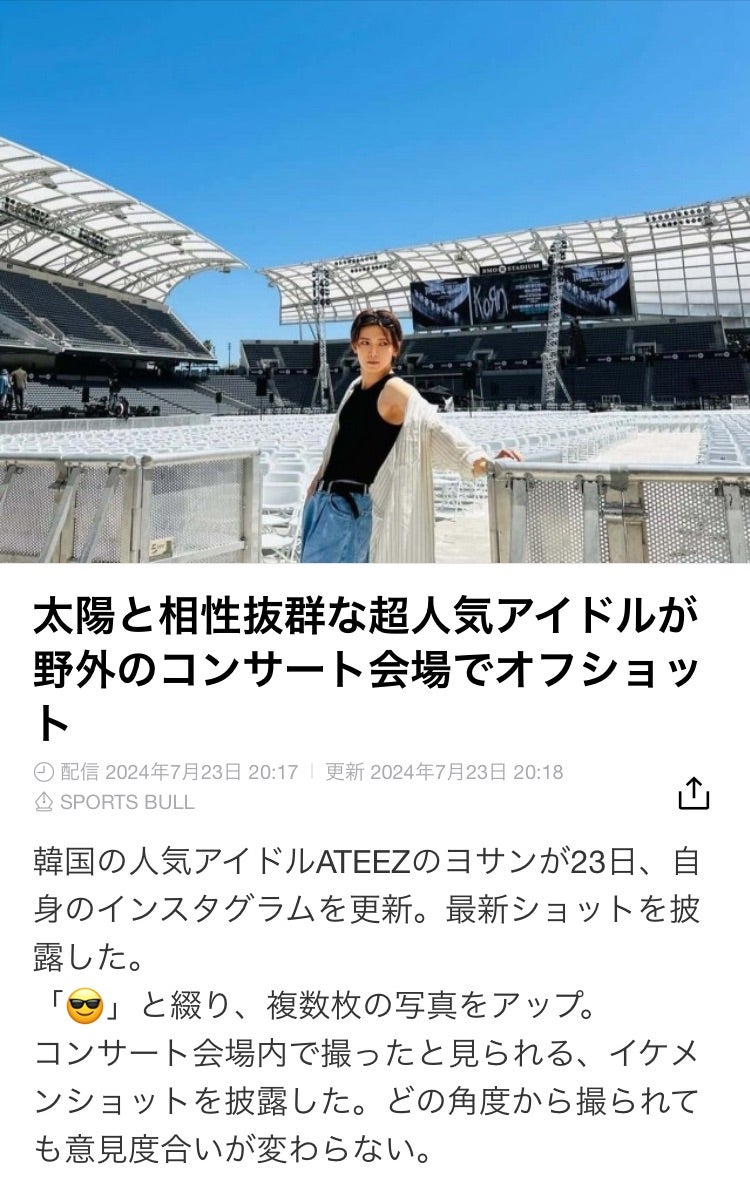 ATEEZ ヨサン 太陽との相性抜群なコンサート会場でのオフショットATEEZ 航海日誌⚓️。
