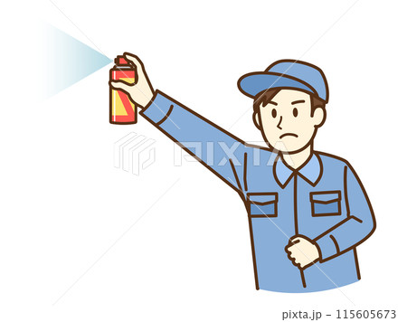 スプレーを吹き付ける作業服を着た男性のイラスト素材115605673- PIXTA。