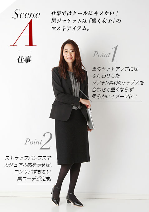 06.「知的美人は“黒”を着る」シーン別で、黒の洗練スタイルをレクチャーします。大人のための高感度ファッション通販 タカシマヤファッションスクエア。