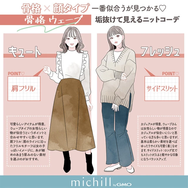 骨格×顔タイプ"で一番似合うが分かる♡垢抜けニットコーデ キュート&フレッシュmichill byGMO ミチル。
