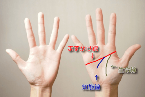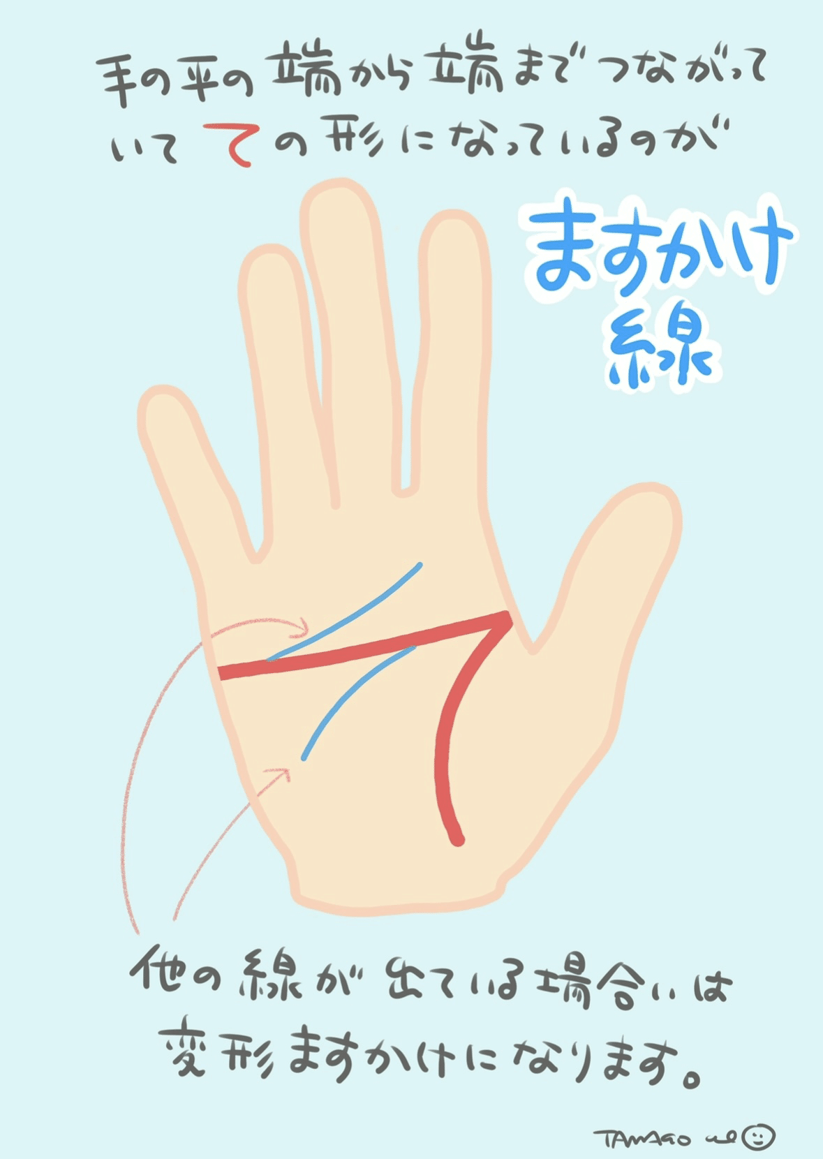 いつも on X: "『ちょっと切れてるけど、キュッてやったらまっすぐになる。笑』と手のひらを見せてくれて、そう言えば私もだ、、、と思い、ますかけ線についての手相占いをあれこれ読み漁ってみた。当たってるかわからないけど面白かった。😁手相ますかけ線右手。