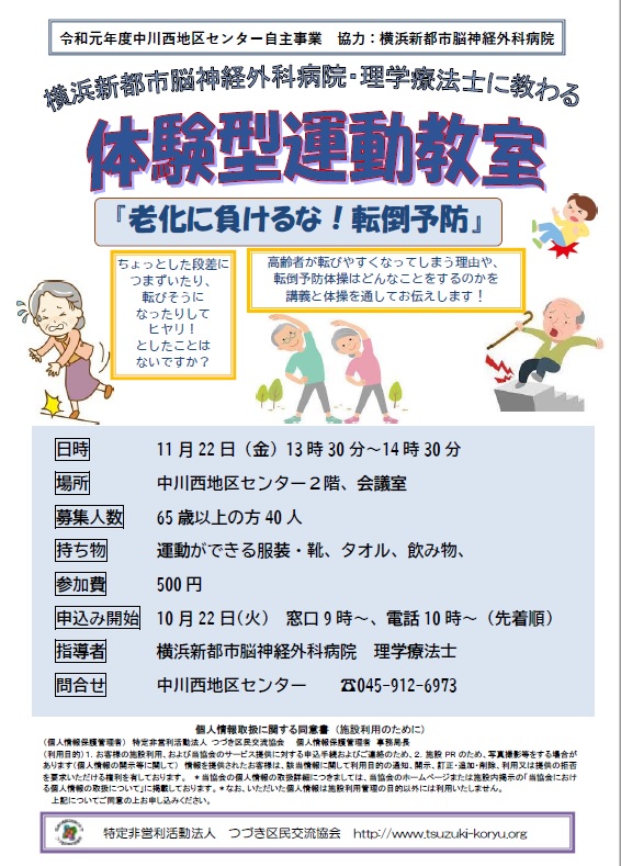 シニア向け 体験型運動教室「老化に負けるな!転倒予防」 – 中川西地区センタ。