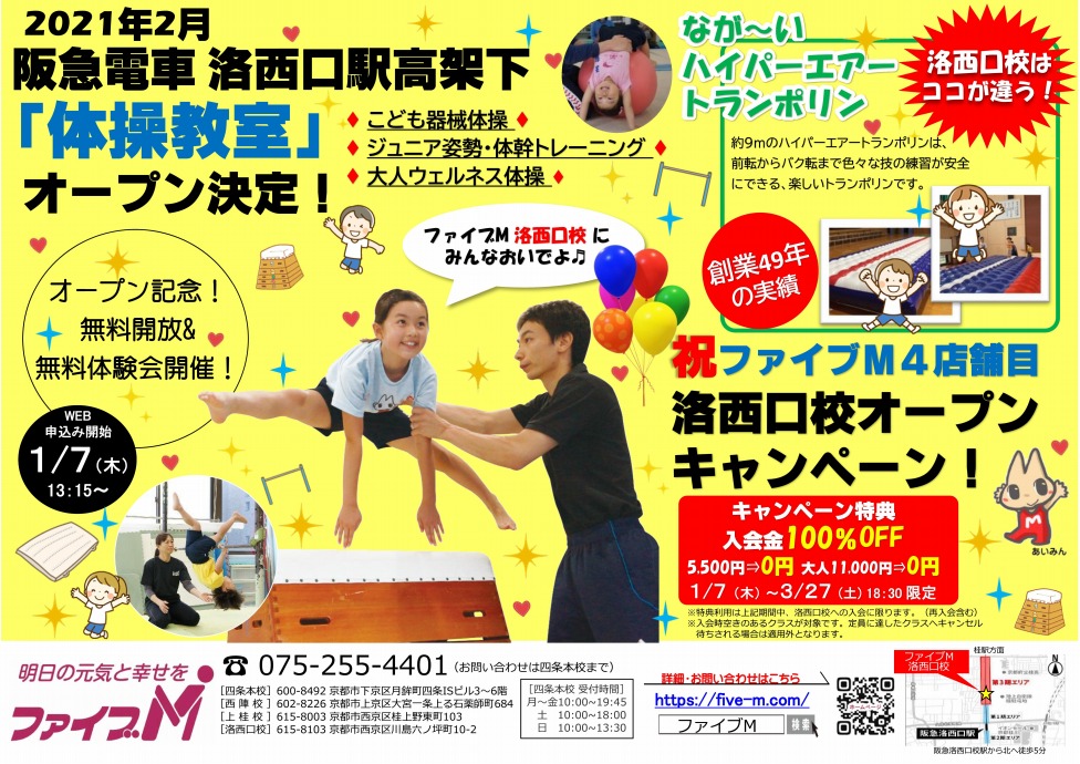 ファイブM洛西口校オープンキャンペーン「無料施設開放・体験会開催」 - ファイブM 京都のフィットネスクラブ・体操教室。