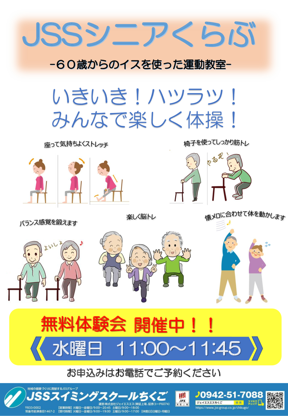 JSSシニアくらぶで足腰を元気に^^♪JSSスイミングスクールちくご。